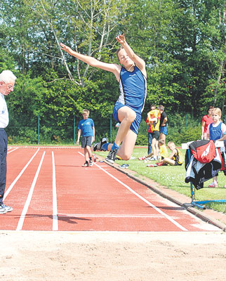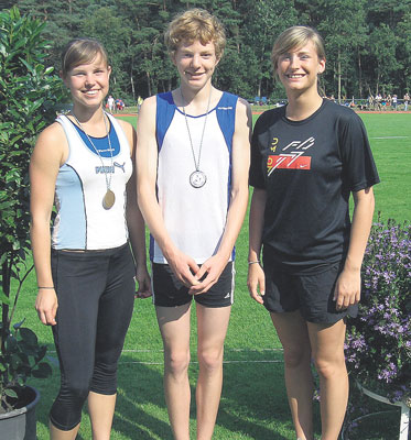 Rene Steinmetz zeigte im Vierkampf (M14) einen stabilen Wettkampf und belegte mit guten 1939 Punkten den dritten Platz, womit er sich den Erstplatzierten nur knapp geschlagen geben mußte. Insgesamt konnte er seine beträchtlichen Leistungssteigerungen in diesem Jahr bestätigen und verfehlte insbesondere im Weitsprung (5.32m) und Hochsprung (1.56m) seine Bestleistungen nur knapp. Die Meisterschaftstage endeten mit den Langstreckenläufen. Waren diese Wettbe-werbe in der Vergangenheit eine Domäne der LG Eichsfeld, so glänzten die Athleten durch Abwesenheit. Nur Sarah Meyer vom SV Rhumspringe stellte sich der Konkurrenz in der Altersklasse W13 über die 2000-Meter-Strecke, in der das niedersächsische Niveau von den Läuferinnen aus dem Bezirk Braunschweig bestimmt wird. Nach 8:13 Minuten erreichte Sarah das Ziel und wurde letztlich Fünfte.