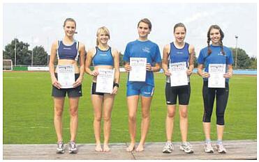 Eichsfeld (hh). Die Sprinterin zeigte bei schönem Spätsommerwetter ausgezeichnete Leistungen und gewann sowohl den Vierkampf als auch den Siebenkampf deutlich. Louisa Becker und Daniela Drogge belegten im Vierkampf die Plätze 3 und 4 und im Siebenkampf Platz 4 und 6. Die ausgeglichenen Leistungen der drei Mädchen vom TV Germania Gieboldehausen spiegelten sich besonders in der Mannschaftswertung wieder. Sie siegten überaus deutlich mit 10.067 Punkten vor der Mannschaft des TSV Arminia Peine/Vöhrum, die 7.290 Punkte erreichten.