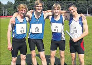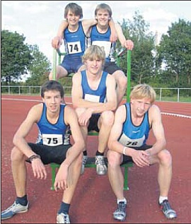 ![]() Das siegreiche Team der LG Eichsfeld: Veramaria Merten, Louisa Becker, Daniela Drogge (vorn von links); Sarah Meyer, Michael Glorius, Laura Borchard, Viktoria Wandt, Rene Steinmetz, Isabell Hartmann (stehend von links). |