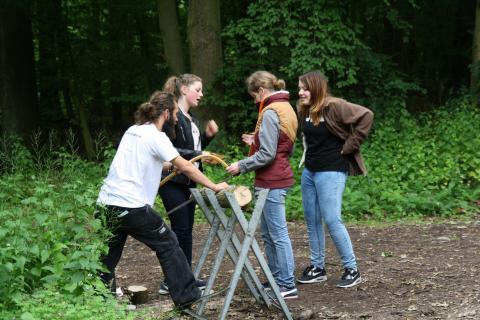 Mit vielen Helfern hatte der SVR eine Waldrallye für Familien oder zusammengewürfelte Gruppen organisiert. Vom Grillplatz ausgehend mussten sternförmig mehrere Stationen angelaufen werden, an denen sportliche Aufgaben zu absolvieren waren. An der ersten Station, die sich auf dem Grillplatz befand, sollten die Teilnehmer mit Material aus dem Wald mit Hilfe von nur 5 Streichhölzern ein Feuer entzünden. Das stellte sich als gar nicht so einfach heraus, zumal es vorher geregnet hatte, aber den meisten gelang es dann doch. Die Helfer an dieser Station passten immer auf, das nicht passiert und löschten die Minifeuer sofort wieder. Die zweite Station befand sich auf dem Weg zum Forellenbrunnen. Hier war von einem Baumstamm ein Stück von 1000g abzusägen. Die Teilnehmer hatten 3 Versuche und mussten dann entscheiden, welches Stück gewogen werden sollte. Dabei schoss Mark Ohnesorge den Vogel ab und sägte ein Stück von 1016g .